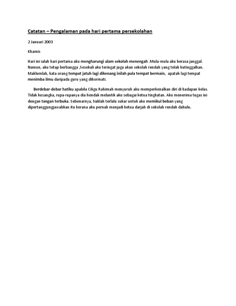Catatan Pengalaman Pada Hari Pertama Persekolahan Pdf